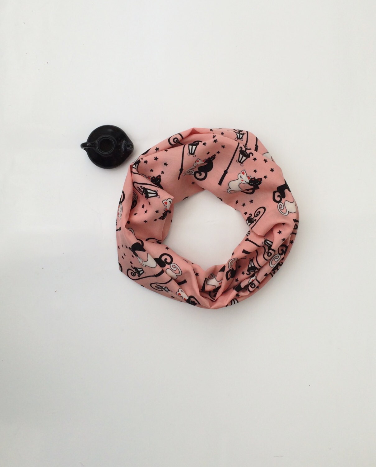 Lovely Cats Printed Peach Circle Infinity Scarf Soft Cotton Lightweight Fashion Scarves, Gift Ideas for Her