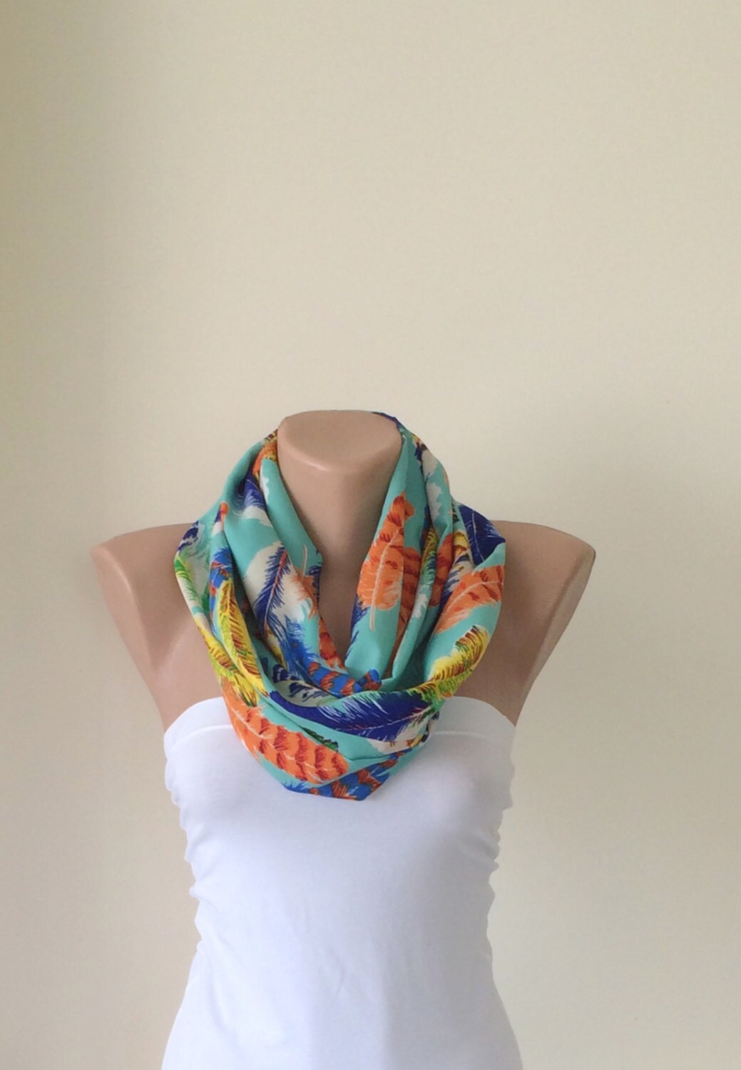 Summer Scarf, Feather Scarf, Tropical Infinity Scarf, Circle Scarf Colorful Loop Infinity Scarf Soft Cotton Designscope, Fast Delivery