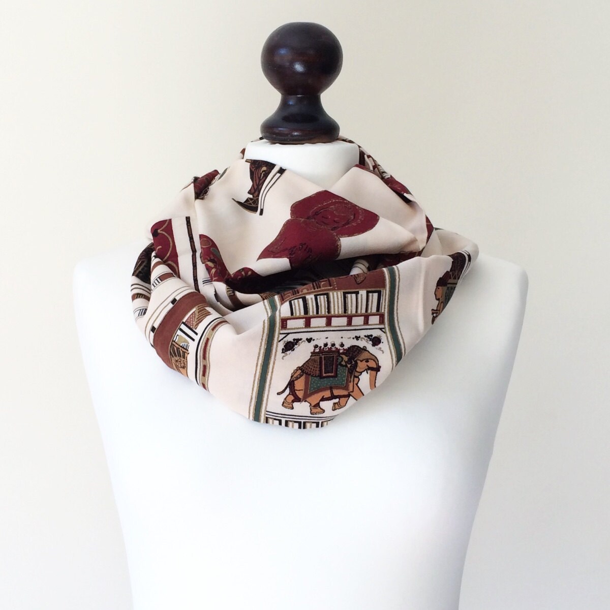 Elephant Scarf, Oriental Design Circle Scarf, Tribal Ethnic Infinity Scarf, Soft Cotton Elephants Scarf, Eastern Scarf, Women, Fast Delivery