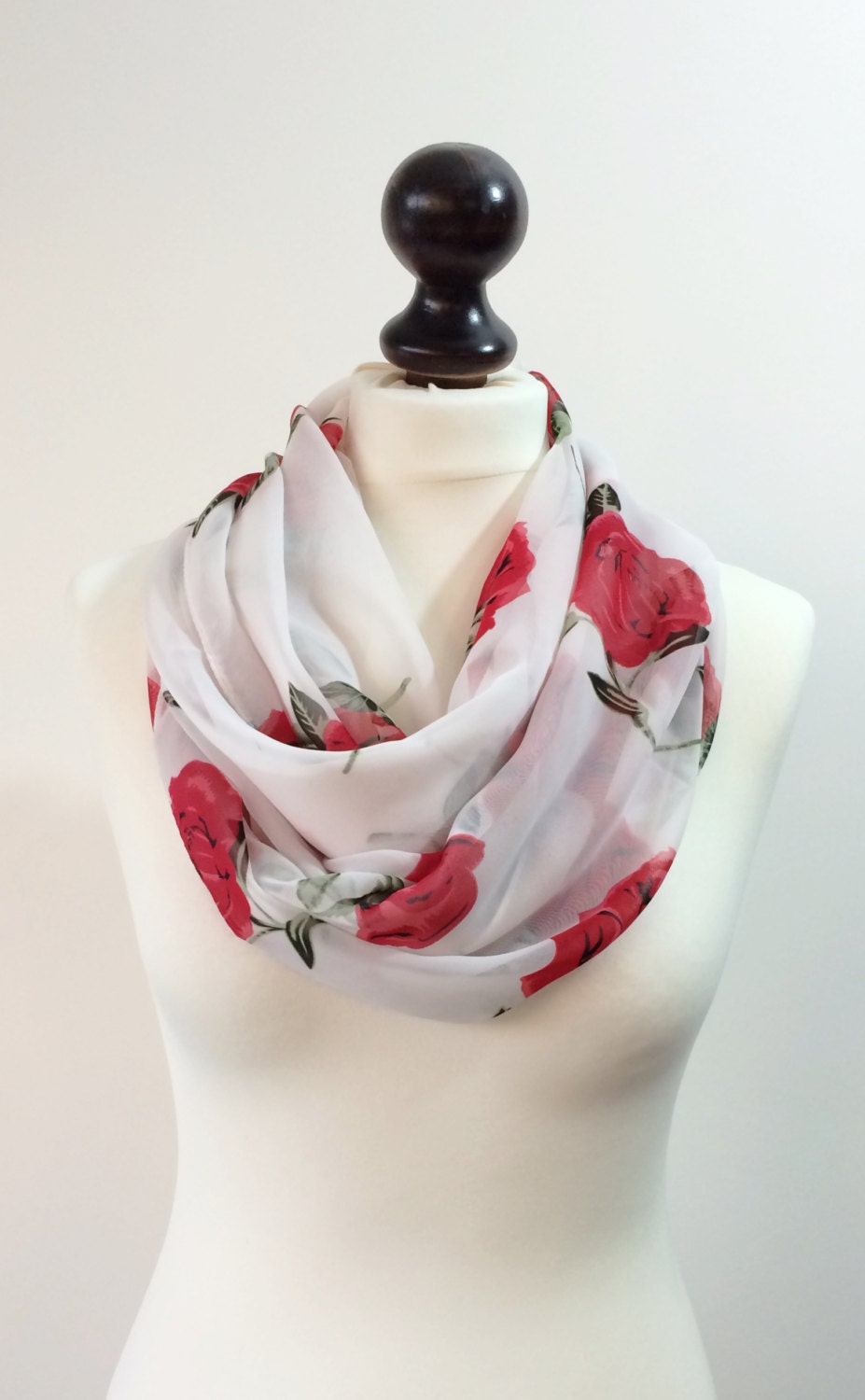 Red Roses Printed Scarf, Lightweight Wrap Scarf, Silky Chiffon Summer Scarf, Trendy Scarf, Oversized Scarf, Designscope